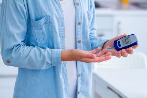 diabetic-patient-measures-blood-glucose-with-glucose-meter-home-woman-having-...